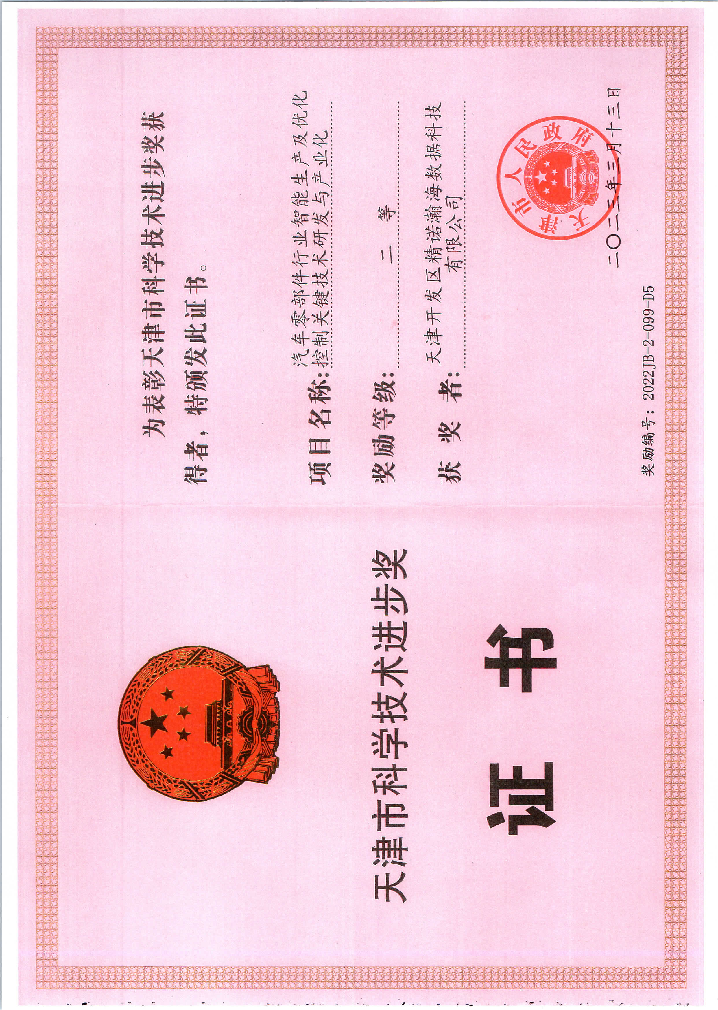 - 天津市科技进步一等奖